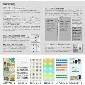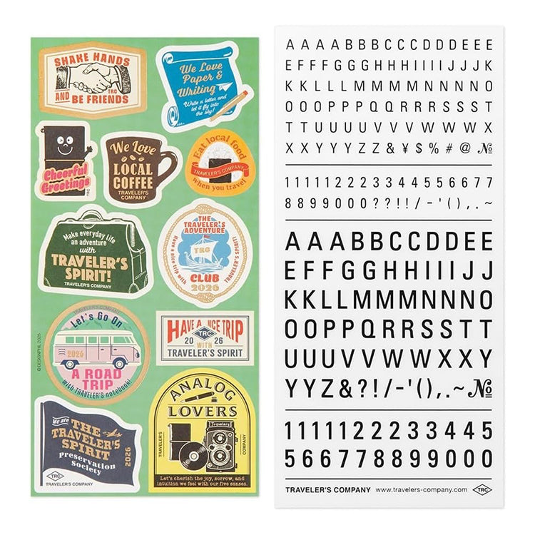 This is a sticker set for customizing TRAVELER’S notebook that makes it more fun, including index and pocket stickers, icon stickers to represent different plans, dry transfer, and stickers to decorate the cover. The 2026 version features a design with a theme of “TRAVELER'S SPIRIT"