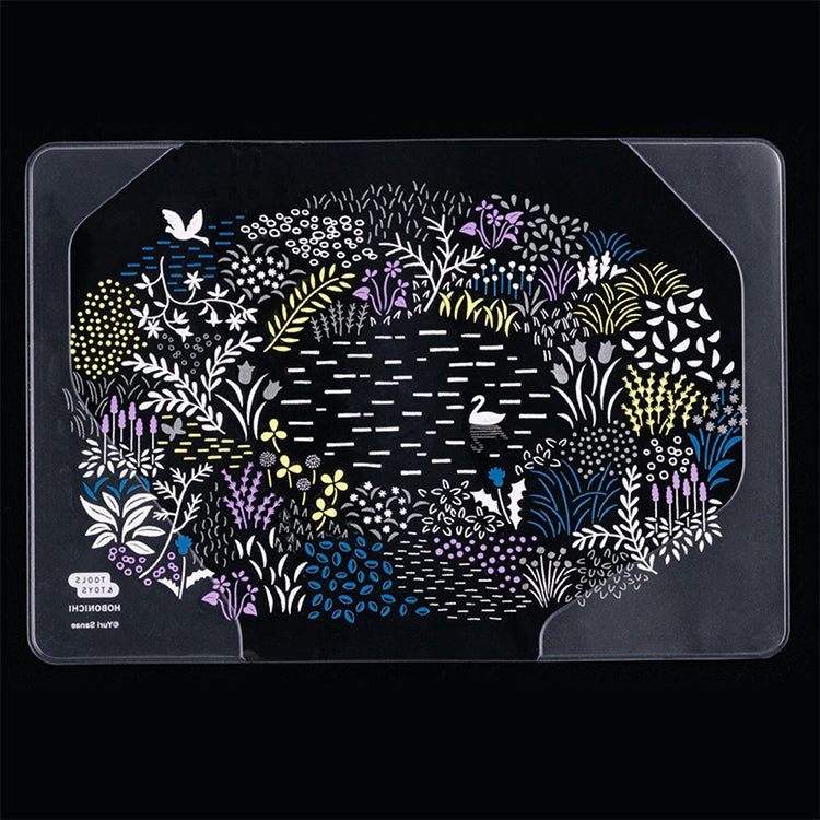 Forest Lake is designed by graphic designer and illustrator Yuri Sanae. Inspired by the quiet time spent reflecting with the techo, she illustrated this lake, surrounded by countless flowers and plants in a flourishing forest.