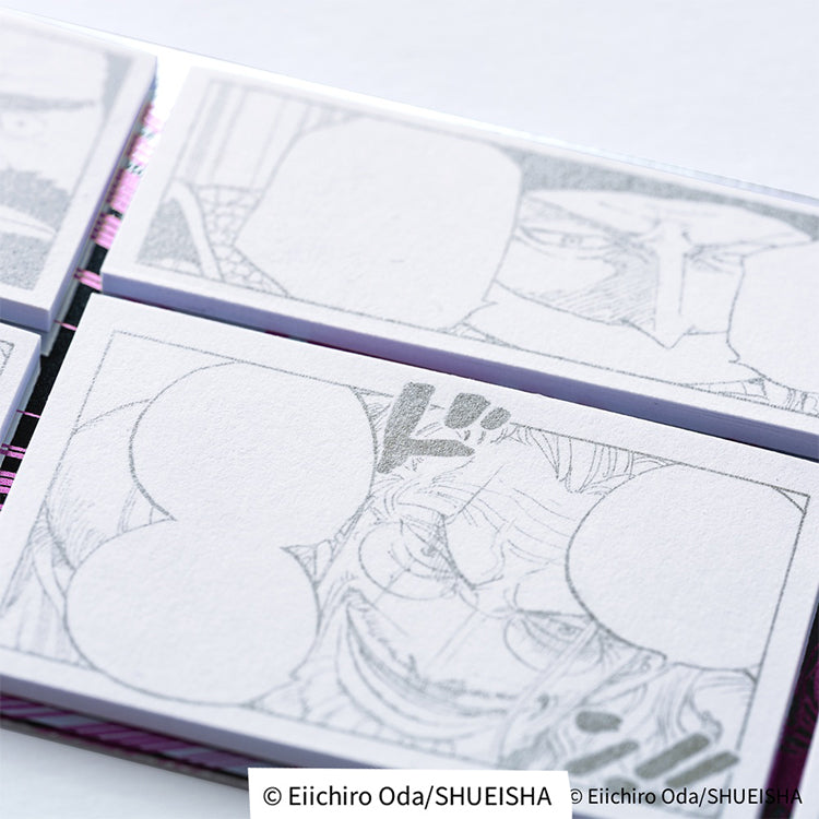 An item in collaboration with ONE PIECE magazine, a publication which dives deep into the world of the manga One Piece. A sticky note set that depicts the cool and understated older men in the One Piece manga. By writing into the speech bubbles, you can leave quiet and refined memos.
