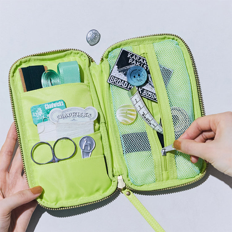 Aqua Lime is a pouch that pairs together a slightly green-hued clear light blue with a dazzling lime green. This color combination overflows with a sense of freshness, and will surely make you feel refreshed and uplifted every time you use this item. This color scheme matches the 2026 Hobonichi Techo cover Colors: Aqua Lime.