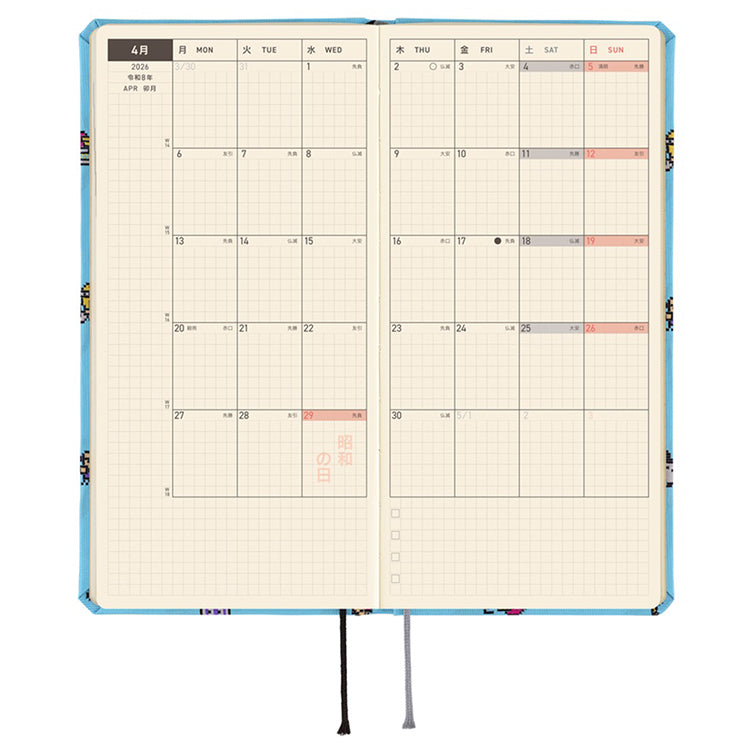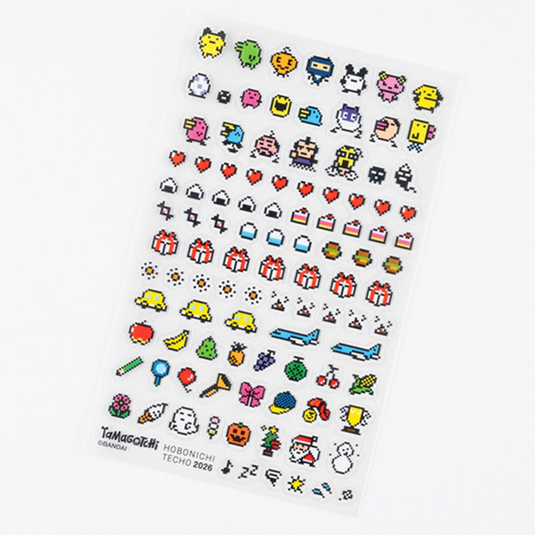 A Hobonichi Techo born from a collaboration with the digital handheld pet Tamagotchi, which took the world by storm after its 1996 release. The series, which celebrates its 30th anniversary in 2026, continues to be loved across generations. This Weeks is designed to spark fond memories for those who took care of their own digital pet in the past, but also to bring joy to those who are still lovingly caring for theirs today. Included with your Tamagotchi series techo are some Tamagotchi themed clear stickers as a bonus.