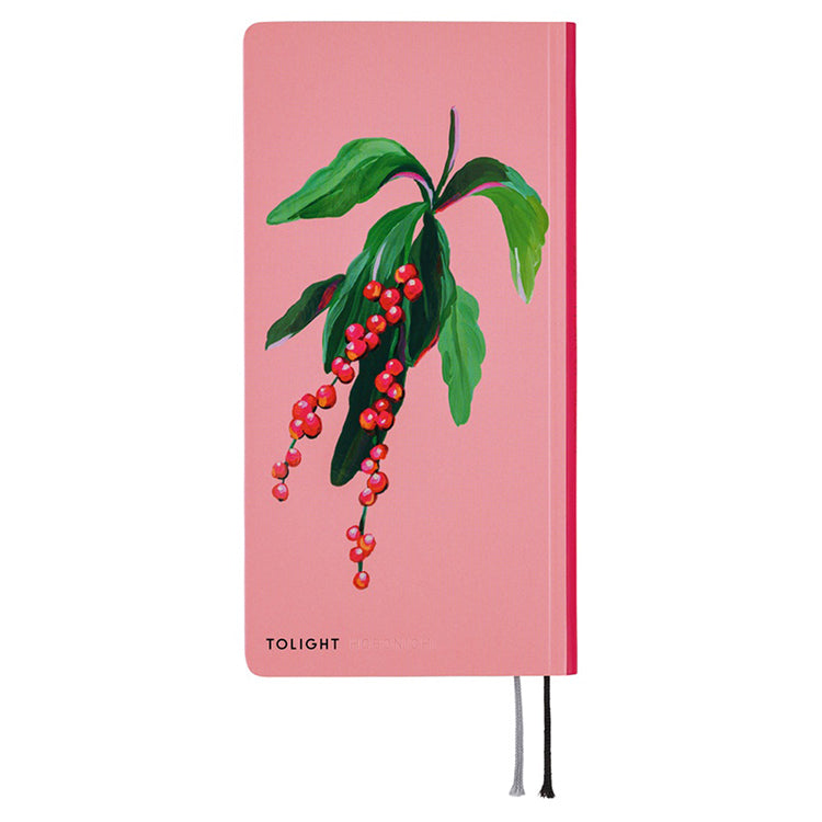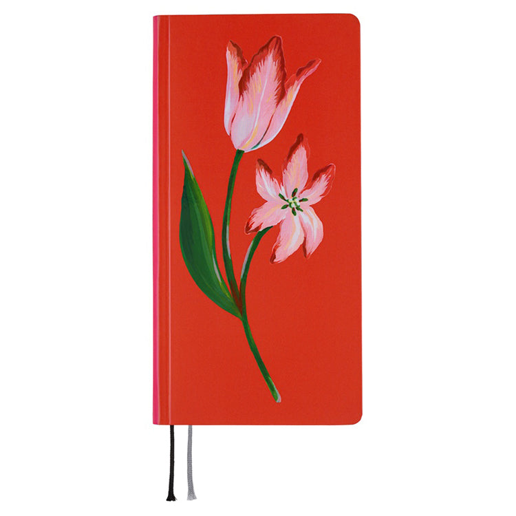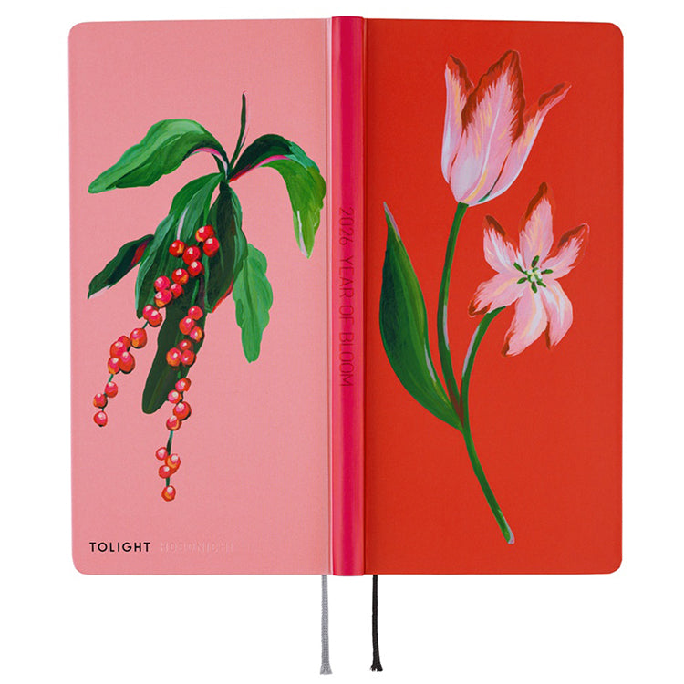 The cover features a bold layout of fresh, vibrant flowers painted in acrylic. The delicate yet distinct brush strokes of the painting, as well as the depth of the colors express the inherent vitality of plants. While the cover is matte, the flowers are silk screen printed onto it for a glossy finish, making for a pleasant contrast in both look and texture.