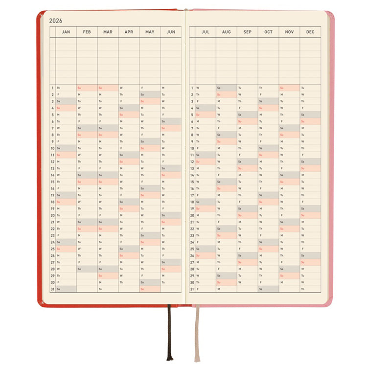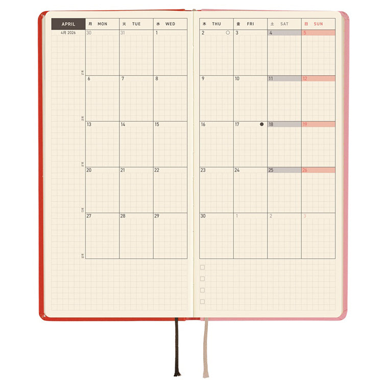 The Weeks book has space for writing in plans or journal entries, and it also has 71 pages of grid paper memo pages in the back (75 pages in the English edition). The back of the book contains bonus pages, including Memories 2026 and 12 Switches to Help You Focus.