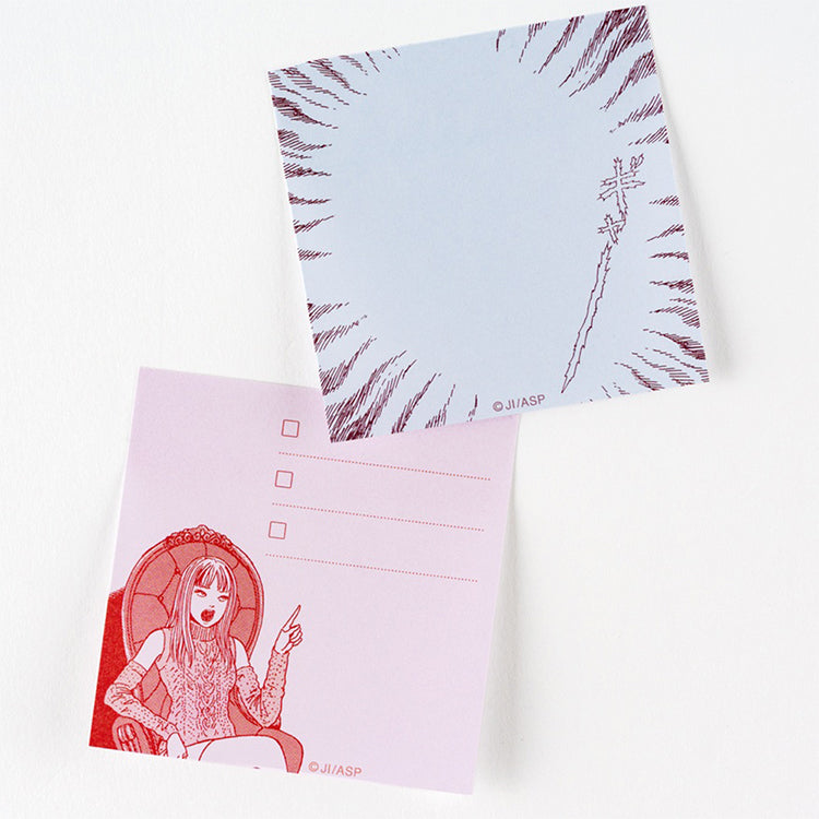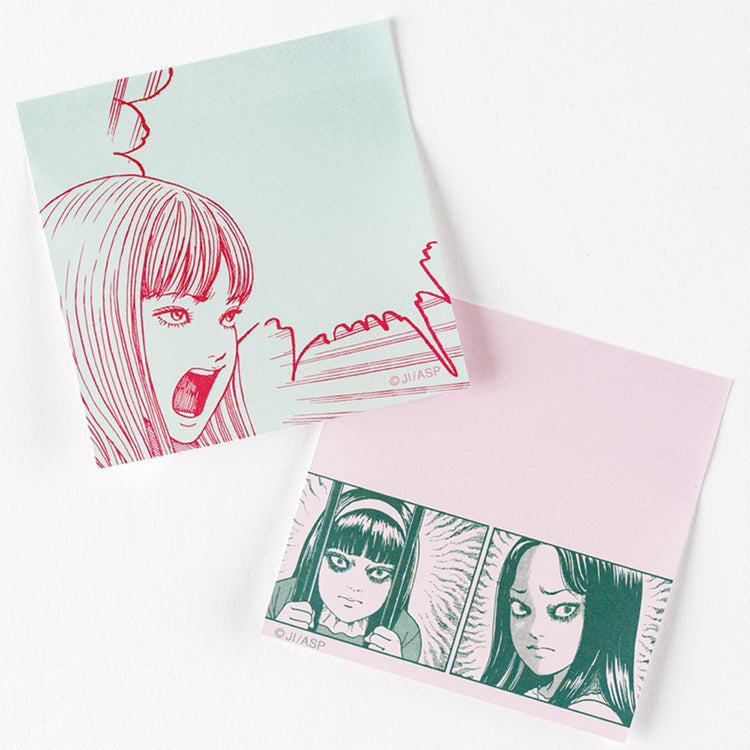 These sticky notes feature artwork from Tomie, the debut and one of the most iconic works of horror manga artist Junji Ito. Using original illustrations from the manga, created nearly 40 years ago in 1987, the designs capture the eerie, one-of-a-kind world Junji Ito is known for.