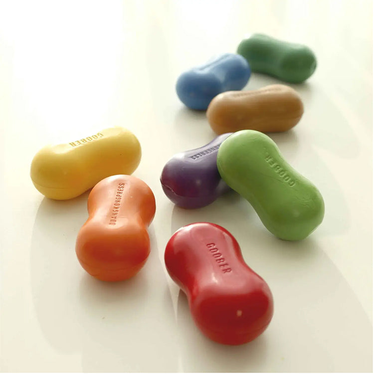 Lovely crayons made with all non-toxic ingredients. These unique crayons come in 8 bright colors in an agronomic shape suitable for easy grab by little hands. They don’t stain hands and are hard to break. Peanut shaped crayons that can be used for play & drawing, stood up in a row, stacked up and stored in their box.  Made in South Korea.