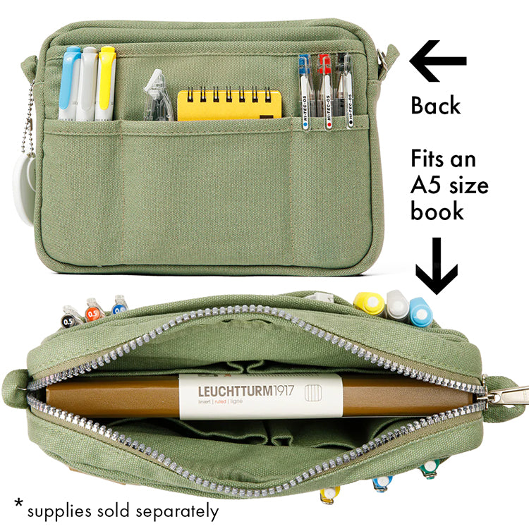 Inside, 20 pockets make space for art supplies, stationery essentials, and an A5 notebook, all secured by a smooth YKK zipper. Sized to fit within larger bags or carry as a standalone stationery pouch, it’s organization that moves with you.