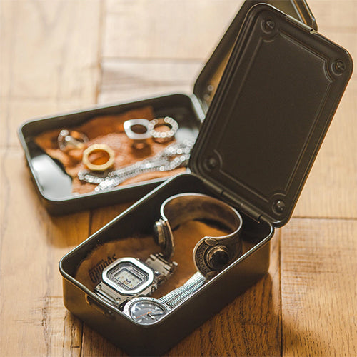 Material: Steel Outer Dimensions: 6.06" × 4.13" × 2.04" Inner Dimensions: 5.4" × 3.46" × 0.75" Weight:11oz Made in Japan