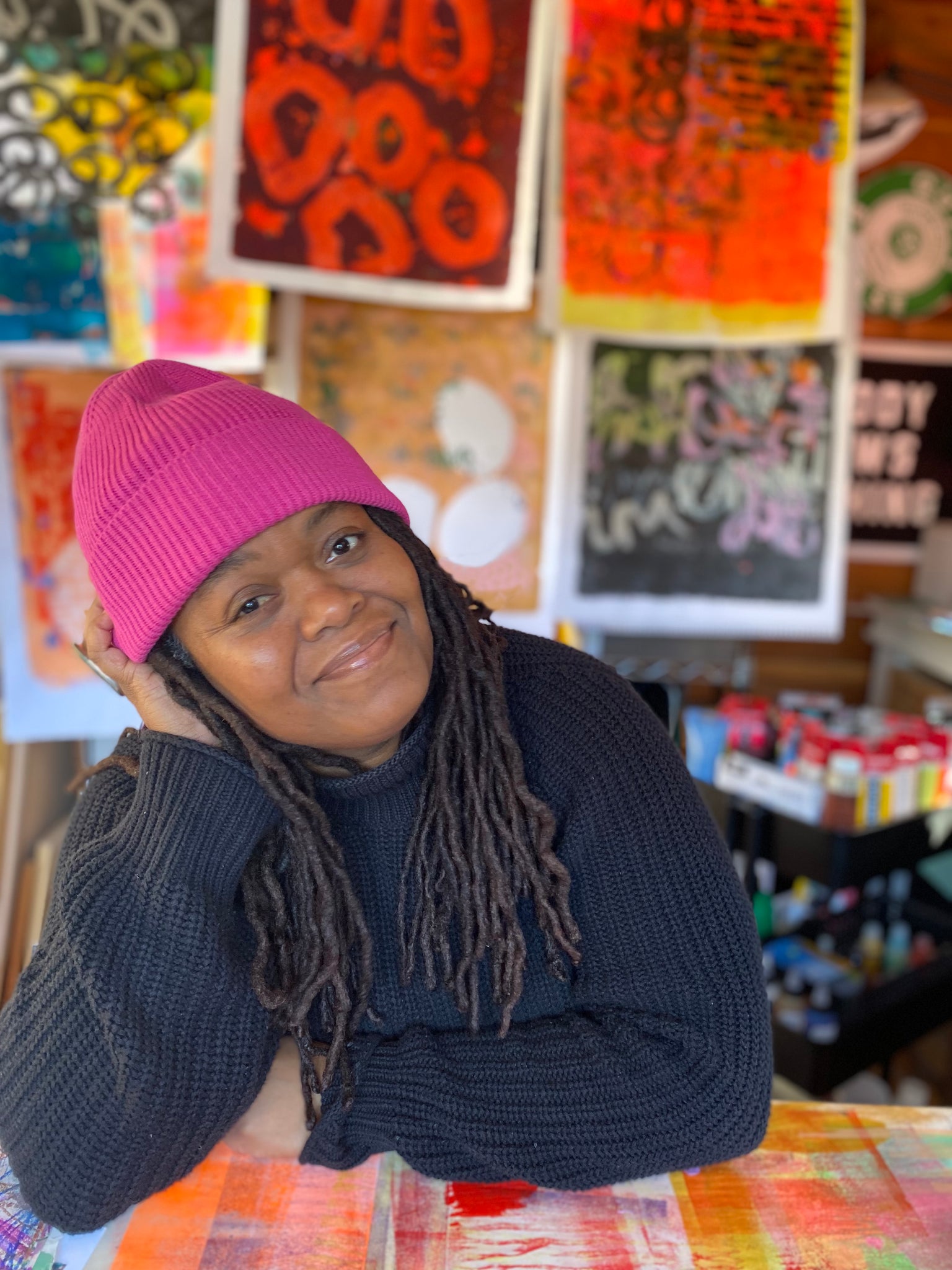 e bond is a designer + artist + writer + bookbinder & educator. Currently, she teaches art workshops & creates art for fabric collections by day, makes handmade books by night, hangs out with trees on weekends and writes something close to poems in the spaces between. Under the studio name roughdrAftbooks, she makes one-of-a-kind artists books, printed pieces and abstract drawings that merge and blur the boundaries of art, craft, surface design and poetry. e holds a BFA in graphic design and art history from Moore College of Art & Design and an MFA in Creative Writing and Book Art from Mills College. Her work is held in library collections across the US and has been published in Printed Matter Magazine, Uppercase Magazine, Berkeley Poetry Review, 500 Handmade Books, as well as numerous books (about books). Most recently, e’s work has moved into the wonderful world of surface design where she designs colorful, abstract fabric collections in collaboration with Free Spirit Fabrics. You can learn more at ebondwork.com or on Instagram as @eisroughdraft.