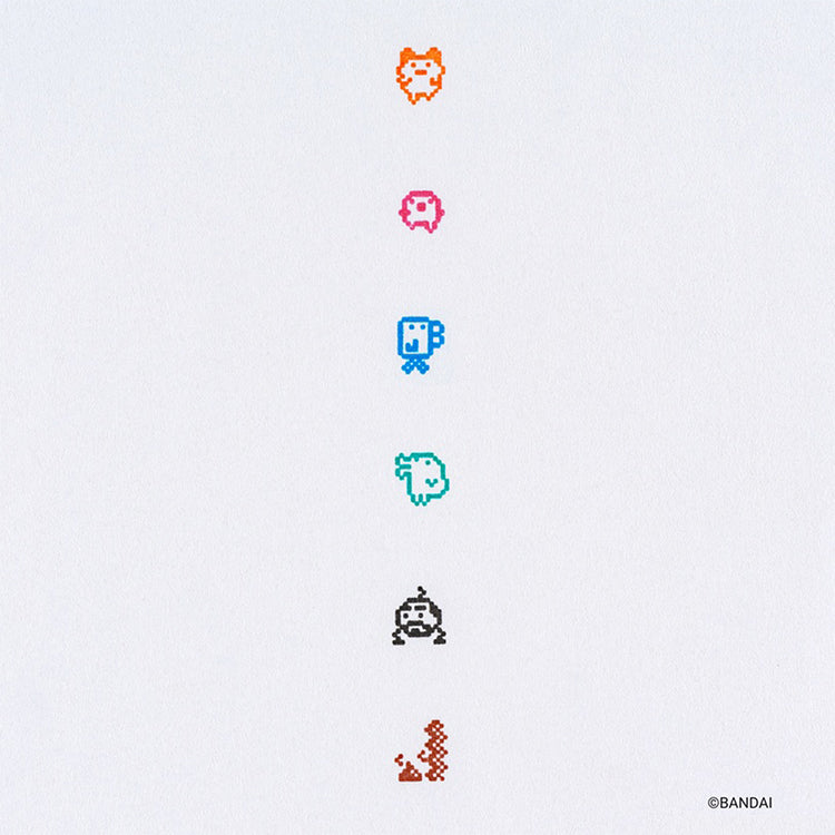 In the design for Tamagotchi, the characters are lined up in their cute pixel art styles. From the top, you have Mametchi in orange ink, Tamatchi in pink ink and Techotchi in blue ink―a Tamagotchi that was newly discovered on the Hobonichi Techo! Continuing on, there is Kuchipatchi in green ink, Oyajitchi in black ink and finally, a poop in brown ink that is being flushed away. It’s all up to your creativity where you want to use which design!